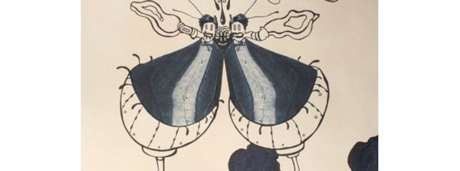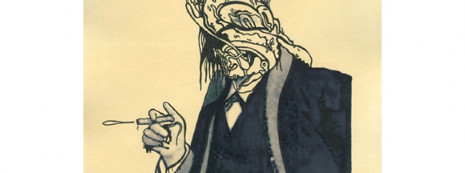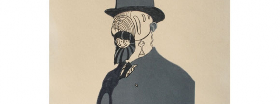Stephen Tompkins Siggy 8 ½ x 11 ink and inkjet collage on coffee-dyed cardstock