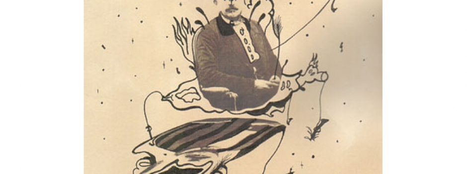 Stephen Tompkins Gerard de Nerval 8 ½ x 11 ink and inkjet collage on coffee-dyed cardstock